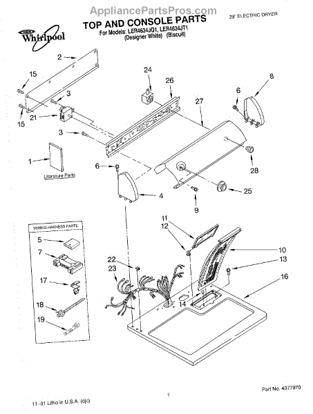 The Dryer Repair Kit is an OEM replacement part for Whirlpool 29-inch large capacity dryer models. It is a kit designed to provide various essential components and hardware needed for common dryer repairs or maintenance tasks.