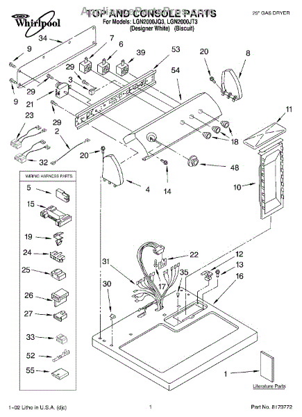 Parts for Whirlpool LGN2000JQ3: 01 - Top And Console, Literature Parts