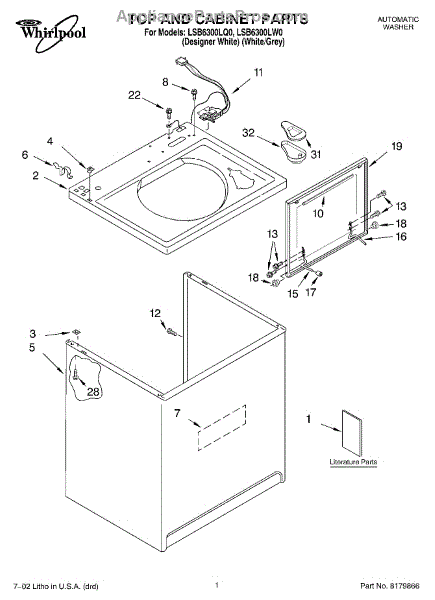 Repair manual for top loading automatic direct drive washing machines made by Whirlpool. Covered brands include Whirlpool, Sears, Kenmore, Kitchen Aid, Roper, and Estate. Easy to follow photographs and step-by-step repair procedures.
