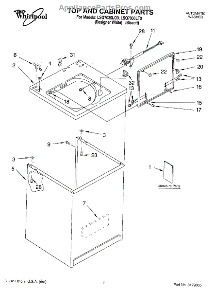 Repair manual for top loading automatic direct drive washing machines made by Whirlpool. Covered brands include Whirlpool, Sears, Kenmore, Kitchen Aid, Roper, and Estate. Easy to follow photographs and step-by-step repair procedures.