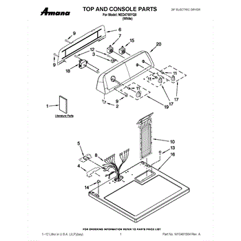 The Console Clip is an OEM part compatible with Whirlpool dryers. This clip secures the control console assembly to the top panel, ensuring it is firmly mounted during operation. Properly functioning clips are necessary to maintain the correct alignment of controls and prevent detachment.