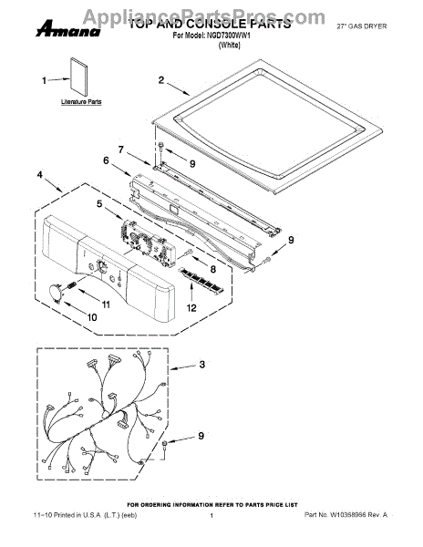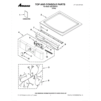 Parts for Amana NGD7300WW1: 01 - Top And Console Parts