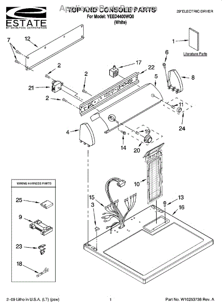 Note: For square top push to start switch, use part number W10156101.