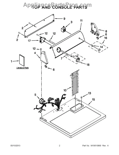 The Console Clip is an OEM part compatible with Whirlpool dryers. This clip secures the control console assembly to the top panel, ensuring it is firmly mounted during operation. Properly functioning clips are necessary to maintain the correct alignment of controls and prevent detachment.