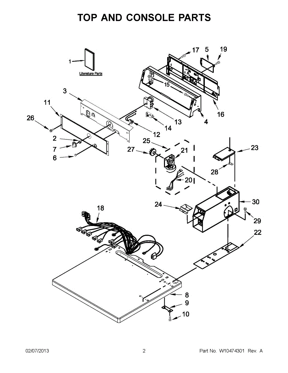 Replace your dryer's top panel if it's cracked, dented, or damaged. This panel covers the top of your dryer cabinet and provides access to components.
