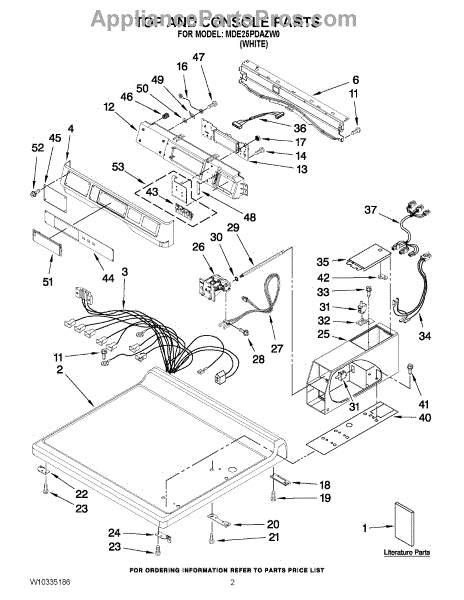 Parts for Maytag MDE25PDAZW0: 01 - Top And Console Parts