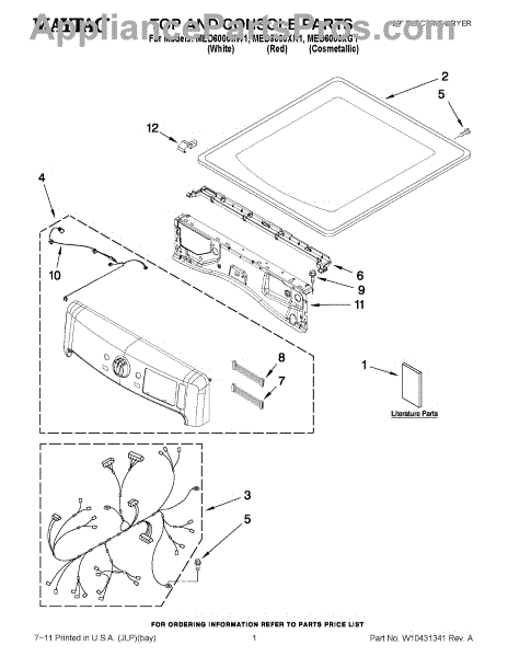 This top panel is the upper cover of your dryer's cabinet. Replace a dented, rusted, or warped panel to restore a secure, flush fit and the clean, finished look of your machine.