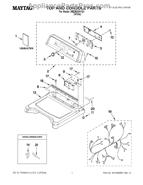 This wire harness assembly routes power and signals between appliance components so controls, motors, and sensors can operate reliably. Replacing a damaged harness restores proper electrical connections and helps eliminate intermittent faults. What it does: