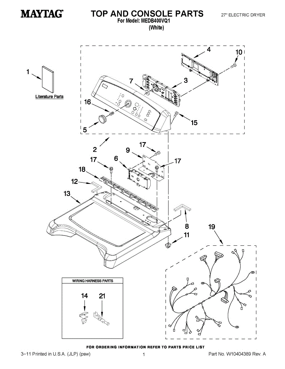 This wire harness assembly routes power and signals between appliance components so controls, motors, and sensors can operate reliably. Replacing a damaged harness restores proper electrical connections and helps eliminate intermittent faults. What it does: