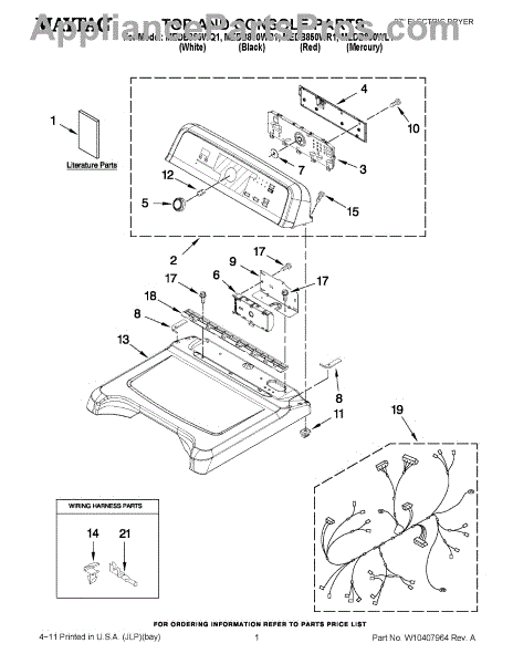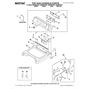 Parts for Maytag MEDB850WQ1: 01 - Top And Console Parts