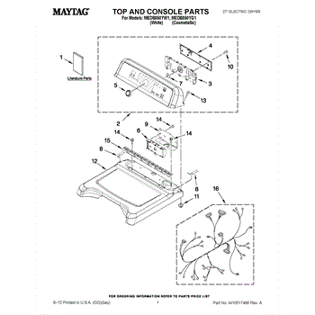 Parts for Maytag MEDB850YG1: 01 - Top And Console Parts