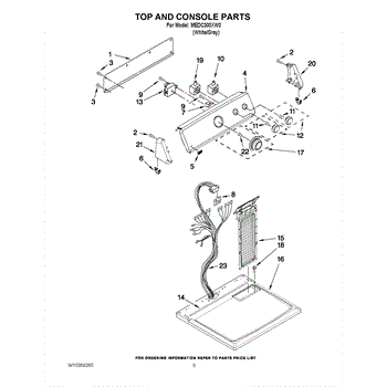 The Console Clip is an OEM part compatible with Whirlpool dryers. This clip secures the control console assembly to the top panel, ensuring it is firmly mounted during operation. Properly functioning clips are necessary to maintain the correct alignment of controls and prevent detachment.