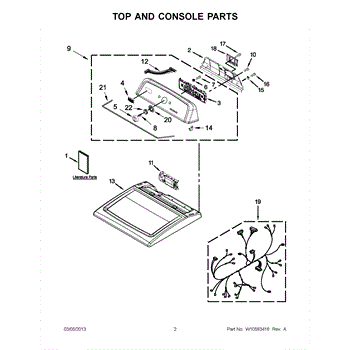 The Console Clip is an OEM part compatible with Whirlpool dryers. This clip secures the control console assembly to the top panel, ensuring it is firmly mounted during operation. Properly functioning clips are necessary to maintain the correct alignment of controls and prevent detachment.