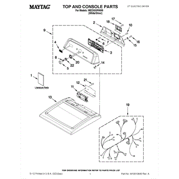 The Console Clip is an OEM part compatible with Whirlpool dryers. This clip secures the control console assembly to the top panel, ensuring it is firmly mounted during operation. Properly functioning clips are necessary to maintain the correct alignment of controls and prevent detachment.