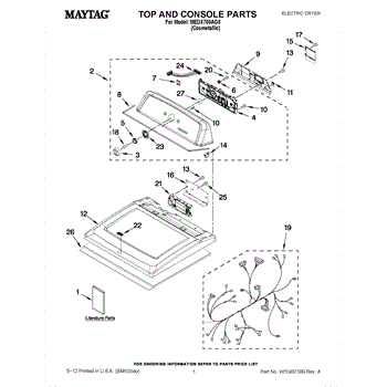 The Console Clip is an OEM part compatible with Whirlpool dryers. This clip secures the control console assembly to the top panel, ensuring it is firmly mounted during operation. Properly functioning clips are necessary to maintain the correct alignment of controls and prevent detachment.