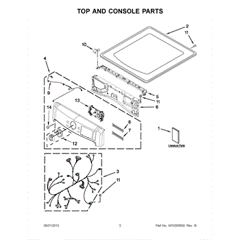 This top panel is the upper cover of your dryer's cabinet. Replace a dented, rusted, or warped panel to restore a secure, flush fit and the clean, finished look of your machine.
