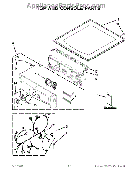 This top panel is the upper cover of your dryer's cabinet. Replace a dented, rusted, or warped panel to restore a secure, flush fit and the clean, finished look of your machine.