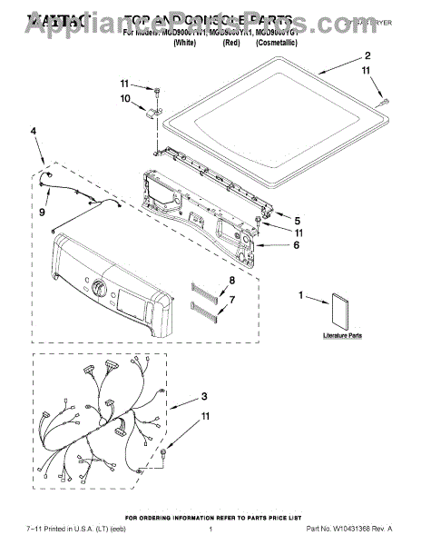 This top panel is the upper cover of your dryer's cabinet. Replace a dented, rusted, or warped panel to restore a secure, flush fit and the clean, finished look of your machine.