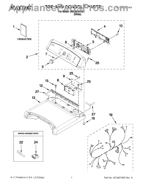 This genuine wire harness is the complete wiring assembly that routes power and control signals between the appliance's control and its components, restoring reliable electrical connections and consistent operation. What it does: