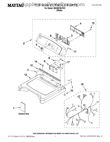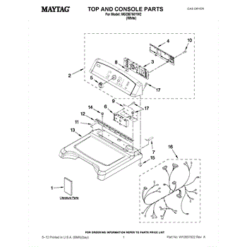 Parts for Maytag MGDB750YW2: 01 - Top And Console Parts