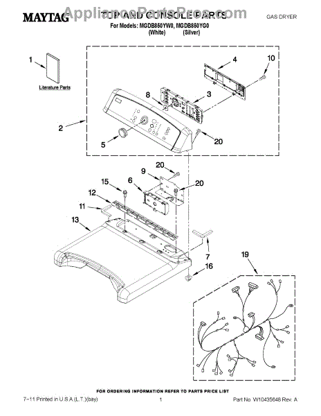 Parts for Maytag MGDB850YG0: 01 - Top And Console Parts