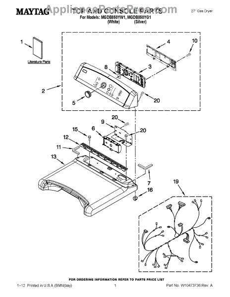 Parts for Maytag MGDB850YG1: 01 - Top And Console Parts
