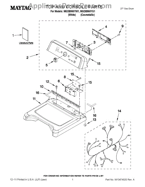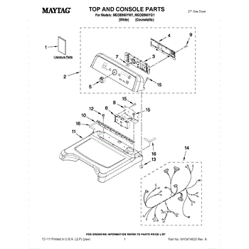 Parts for Maytag MGDB950YG1: 01 - Top And Console Parts