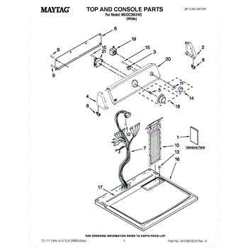 The Console Clip is an OEM part compatible with Whirlpool dryers. This clip secures the control console assembly to the top panel, ensuring it is firmly mounted during operation. Properly functioning clips are necessary to maintain the correct alignment of controls and prevent detachment.