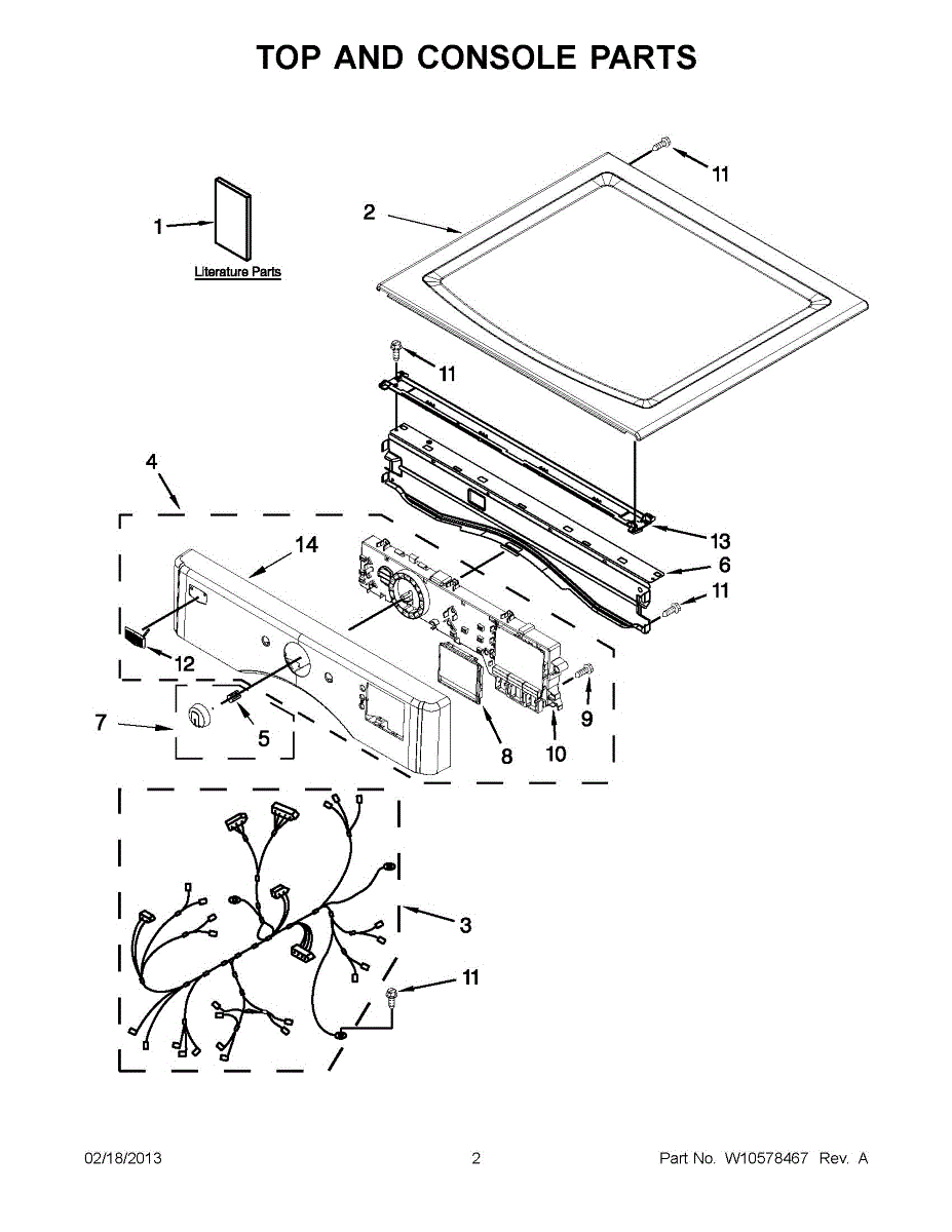 White dryer top panel that covers the drum and internal components. Replace if cracked, damaged, rusty, or worn from heavy use or chemical spills.