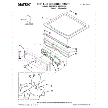 Parts for Maytag MGDE251YG0: 01 - Top And Console Parts