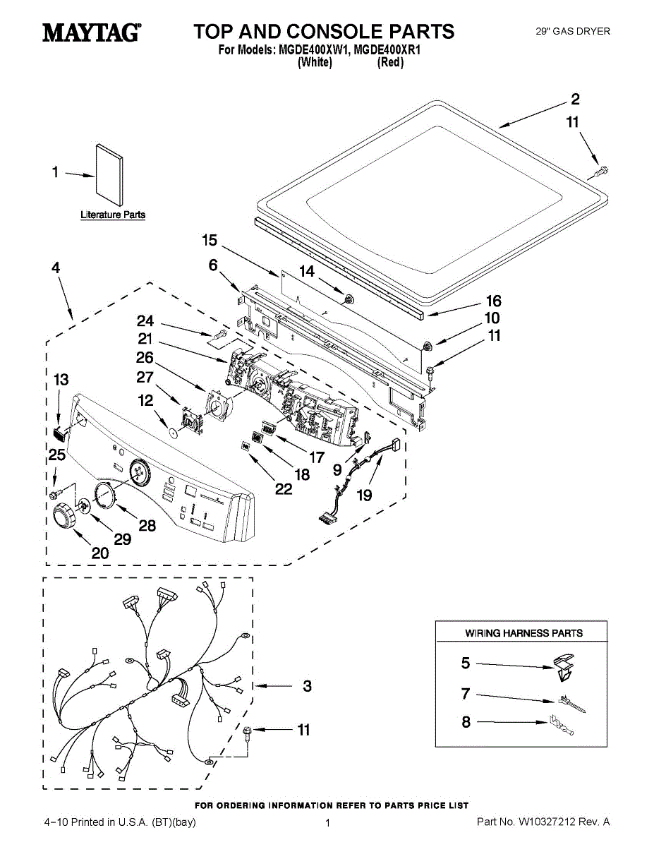 Replace your dryer's internal wire harness if damaged, frayed, or showing exposed wires. Connects electrical components inside the dryer cabinet.