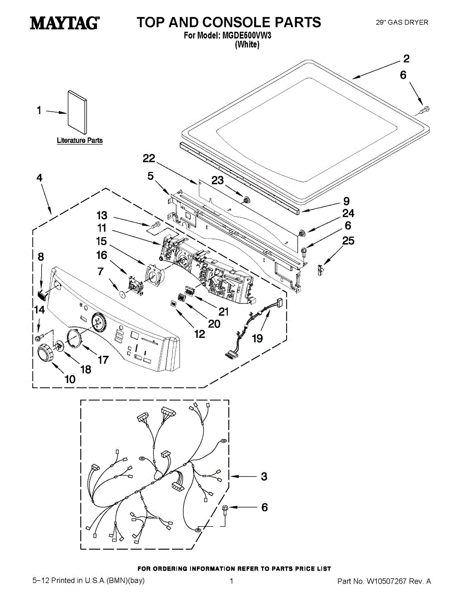 Wire harness for dryers. Connects electrical components inside the dryer cabinet. Replace if wires are frayed, damaged, or connections are loose or burnt.