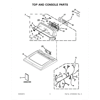 The Console Clip is an OEM part compatible with Whirlpool dryers. This clip secures the control console assembly to the top panel, ensuring it is firmly mounted during operation. Properly functioning clips are necessary to maintain the correct alignment of controls and prevent detachment.