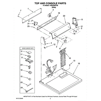 The Console Clip is an OEM part compatible with Whirlpool dryers. This clip secures the control console assembly to the top panel, ensuring it is firmly mounted during operation. Properly functioning clips are necessary to maintain the correct alignment of controls and prevent detachment.