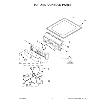 This top panel is the upper cover of your dryer's cabinet. Replace a dented, rusted, or warped panel to restore a secure, flush fit and the clean, finished look of your machine.