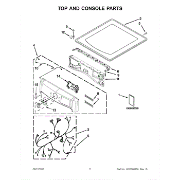This top panel is the upper cover of your dryer's cabinet. Replace a dented, rusted, or warped panel to restore a secure, flush fit and the clean, finished look of your machine.