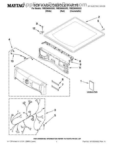 Parts for Maytag YMED6000XW3: 01 - Top And Console Parts