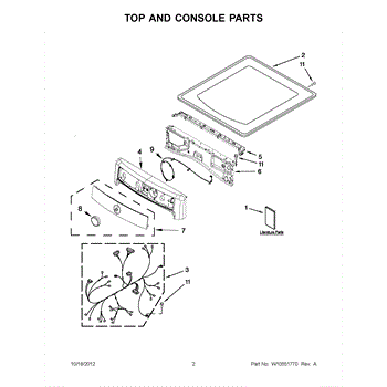 • Forms the dryer's upper cabinet surface and covers internal components