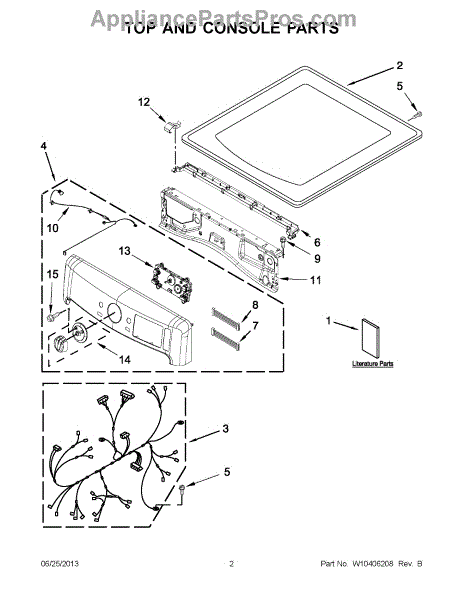 This top panel is the upper cover of your dryer's cabinet. Replace a dented, rusted, or warped panel to restore a secure, flush fit and the clean, finished look of your machine.