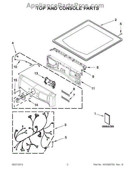 This top panel is the upper cover of your dryer's cabinet. Replace a dented, rusted, or warped panel to restore a secure, flush fit and the clean, finished look of your machine.