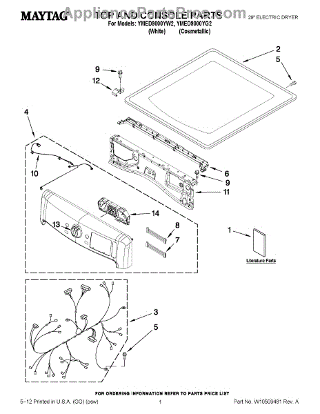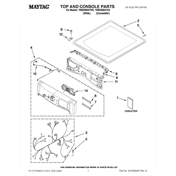 Parts for Maytag YMED9000YW2: 01 - Top And Console Parts