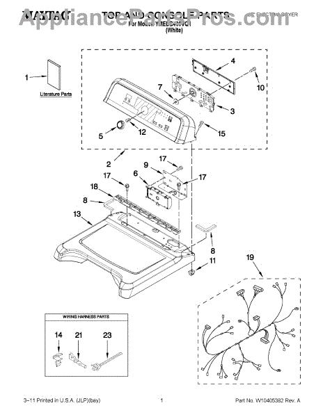 This harness clip secures appliance wiring to the cabinet or components to prevent rubbing, pinching, and interference with moving parts. It keeps wiring routed neatly for reliable operation and reduced risk of abrasion-related failures. What it does: