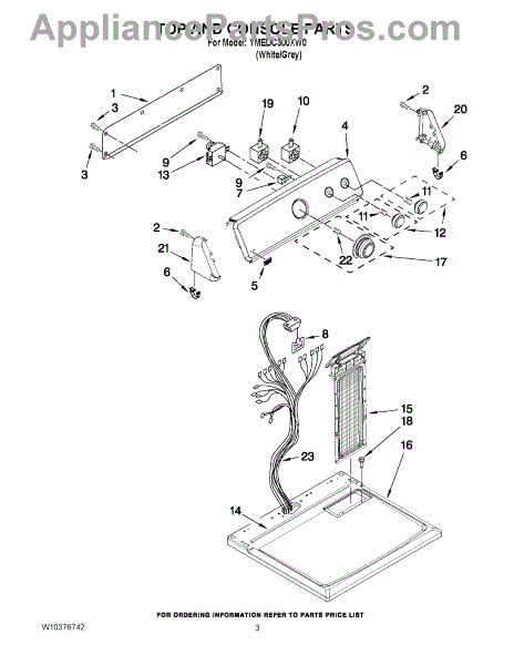 The Dryer Timer is an OEM part for Whirlpool dryers. It controls the drying cycles by regulating the duration and sequence of operations, ensuring that clothes are dried properly according to the selected settings.