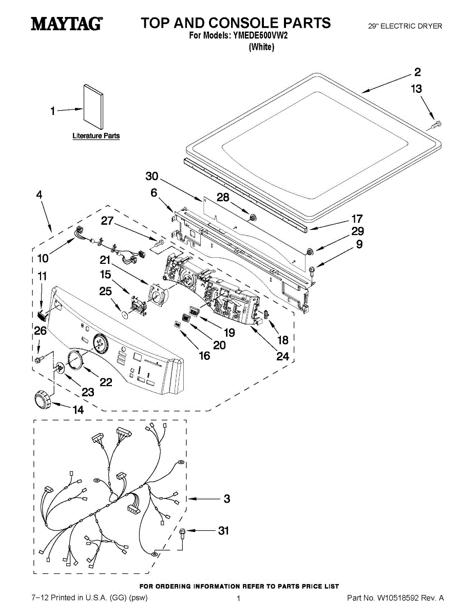 Replace your dryer's internal wire harness if damaged, frayed, or showing exposed wires. Connects electrical components inside the dryer cabinet.