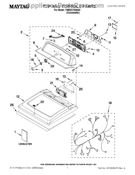 Parts for Maytag YMEDX700AG0: 01 - Top And Console Parts