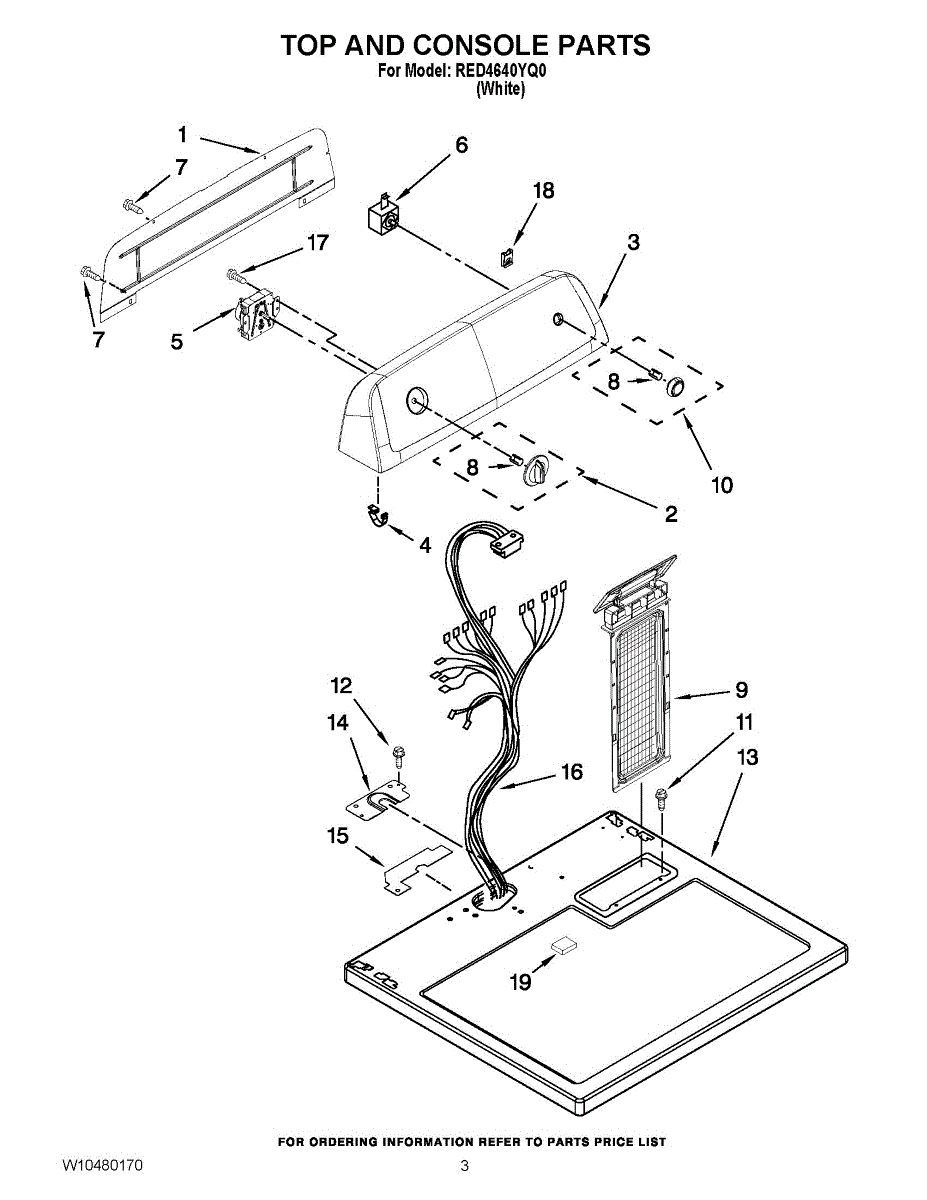 Main top panel assembly that forms the finished top surface of your dryer. Replace if cracked, discolored, damaged, or worn to restore appearance.