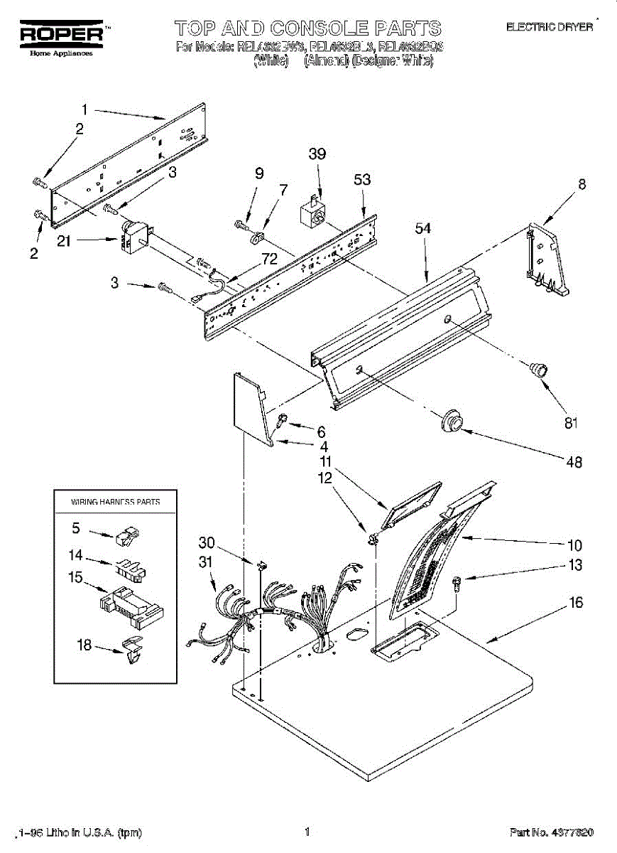 Parts for Roper REL4632BL3: 01 - Section Parts