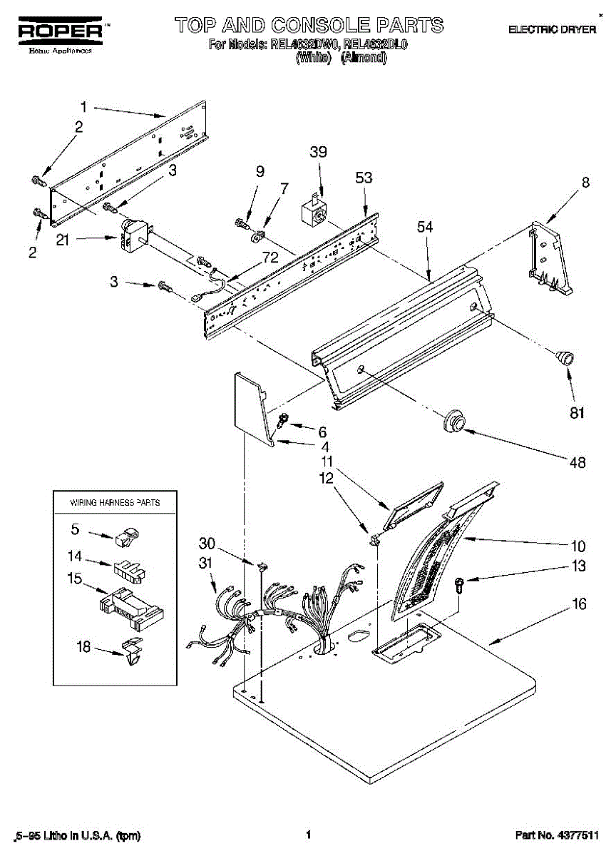 Parts for Roper REL4632DL0: 01 - Section Parts
