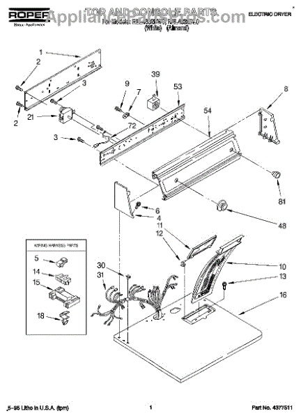 Parts for Roper REL4632DW0: 01 - Section Parts