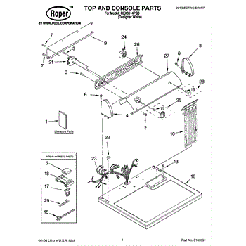 The Dryer Repair Kit is an OEM replacement part for Whirlpool 29-inch large capacity dryer models. It is a kit designed to provide various essential components and hardware needed for common dryer repairs or maintenance tasks.